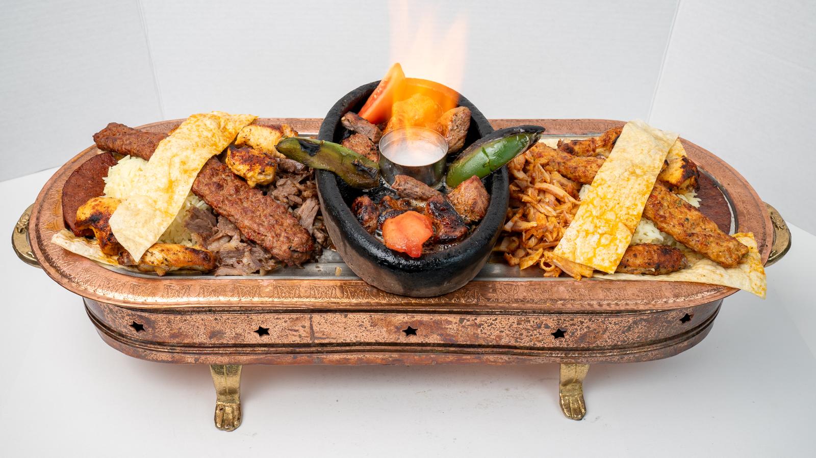 One skewer adana, lamb chops, wings, sujuk, chicken and beef doner